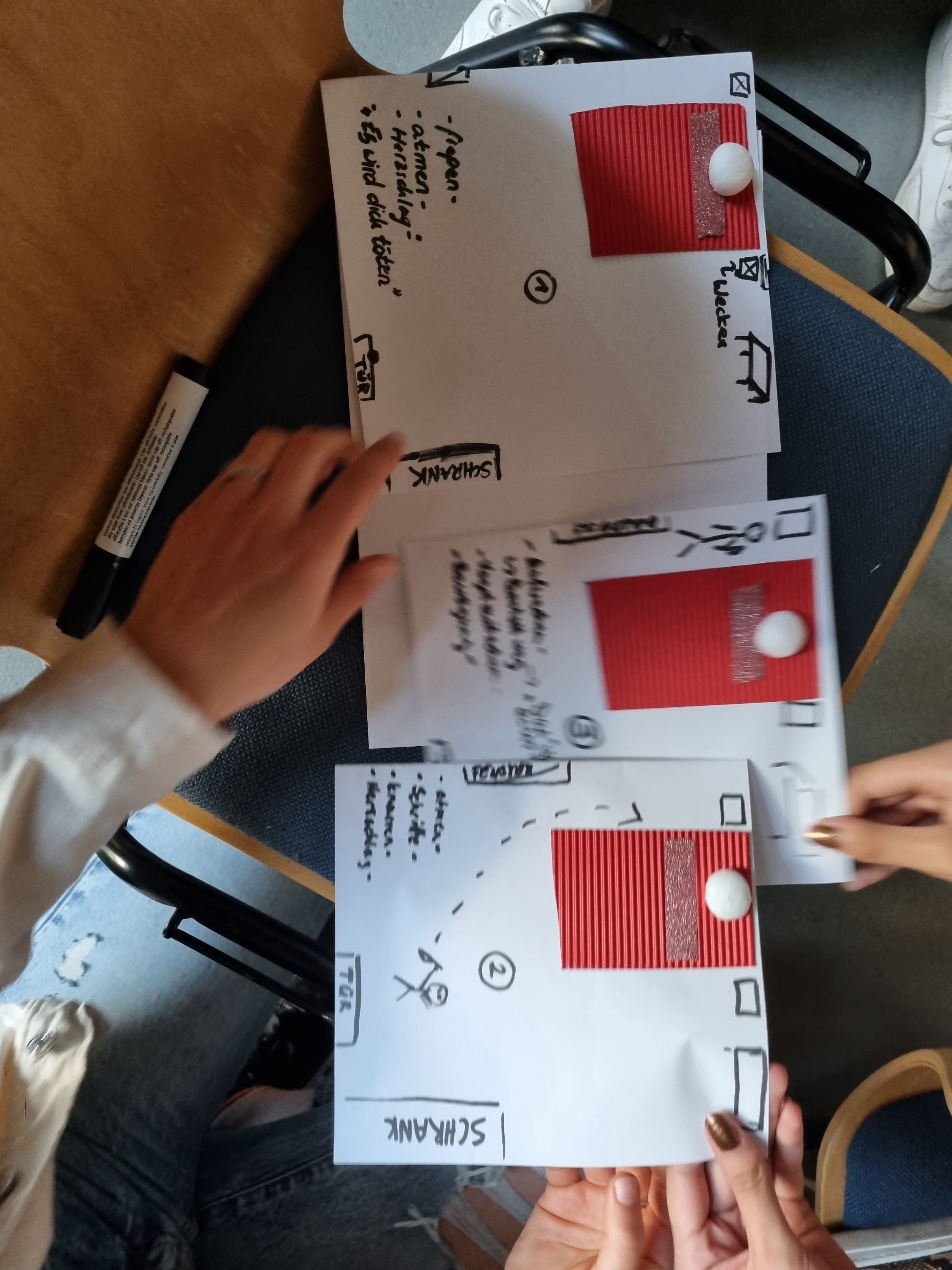 At the end of the first day, the students started thinking about their own projects. Rapid prototyping seems to be a great method to discuss 360º scenes in groups.