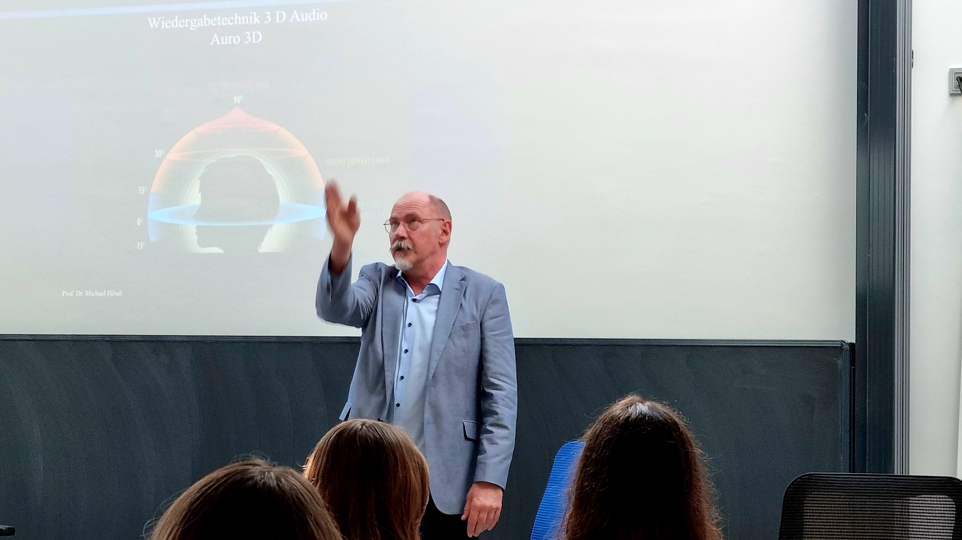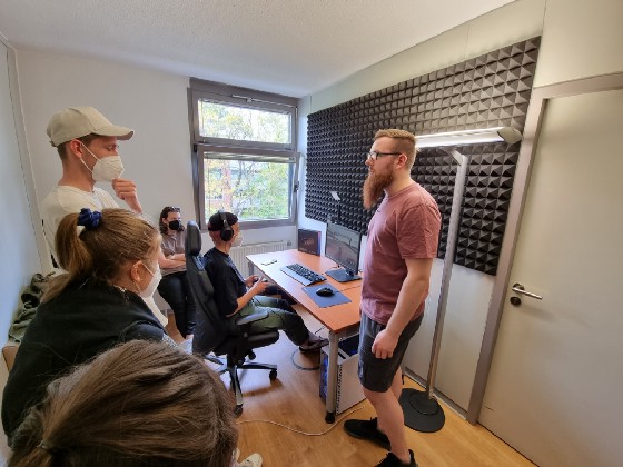 The cool thing is, our colleagues Hösel and Stingl (et al) actually work on their own 3D audio hardware, so we got to check out their latest research findings and listened to the specifics of 3D audio in our own studio at HS Mittweida.